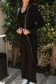 The matching elastic belt with an interlocking gold buckle cinches the waist, offering a flattering silhouette while ensuring all-day comfort. Whether worn on its own for a sophisticated daytime or evening look, or dressed down for a chic, casual vibe, this dress seamlessly transitions through your day. It’s also an excellent layering piece, ideal for cooler days, and perfect for travel thanks to its soft, durable fabric.