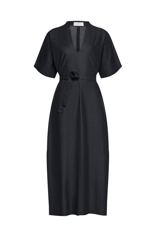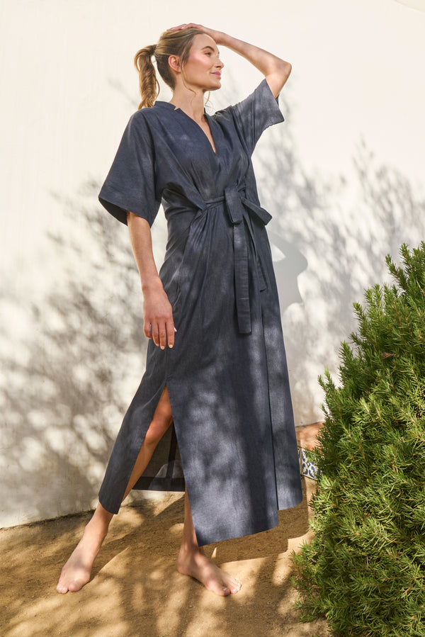 A new icon of relaxed sophistication, The Michele Caftan in Indigo is designed with resort living and wellness in mind. Made from a luxurious, breathable Italian recycled cotton-cashmere blend, this long, lightweight caftan offers the perfect balance of comfort, elegance, and conscious craftsmanship. The elbow-length sleeves and signature LPC neckline bring a refined structure, while the adjustable tie waist allows for a flattering, customizable fit.