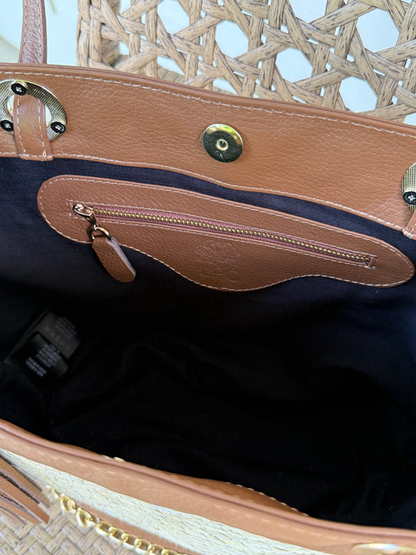 A timeless blend of artisanal craftsmanship and modern luxury, our Mid-Size Fine Palm Tote is a statement of ethical elegance. Handwoven by skilled artisans from Oaxaca’s renowned palm community, this structured yet lightweight tote is accented with a choice of supple black or brown leather, expertly finished in Guanajuato.