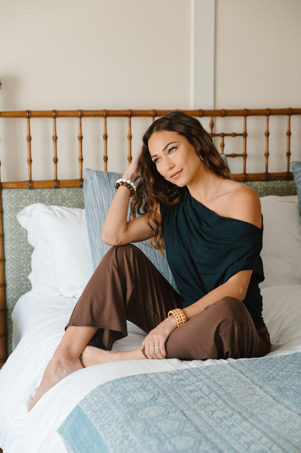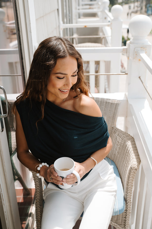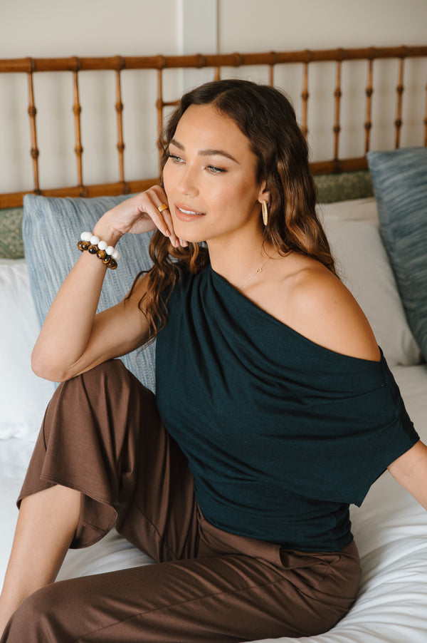 Gracefully draped and effortlessly chic, The Tracey Off-The-Shoulder Top is the epitome of timeless elegance. Crafted from a fine, lightweight bamboo jersey, this top offers a luxuriously soft feel with just the right amount of stretch. The artful draping accentuates your silhouette, highlighting the best of your natural curves while offering a relaxed, flattering fit.