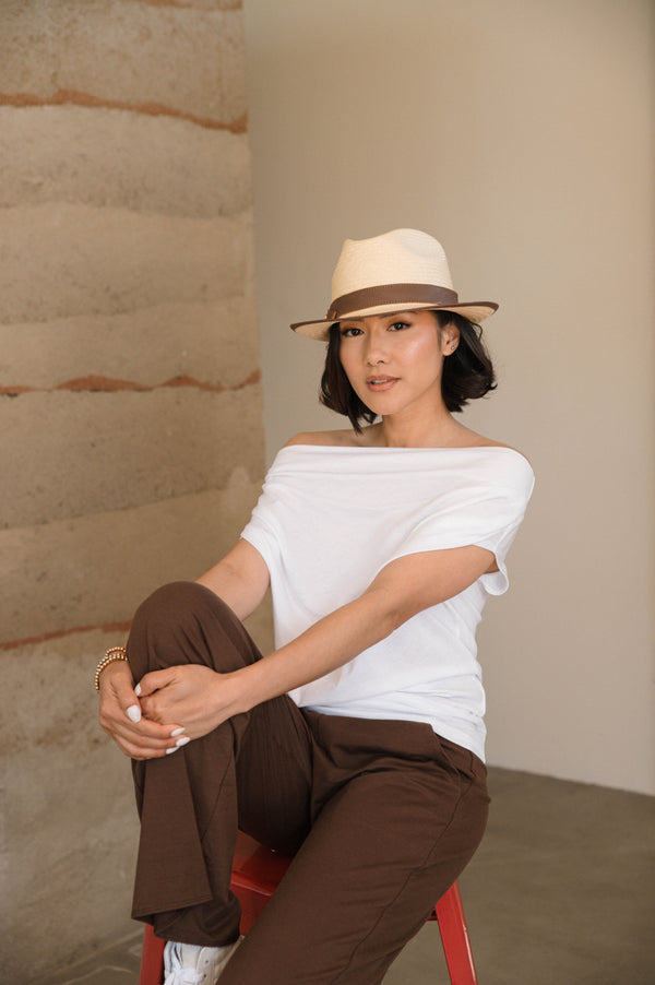 Gracefully draped and effortlessly chic, The Tracey Off-The-Shoulder Top is the epitome of timeless elegance. Crafted from a fine, lightweight bamboo jersey, this top offers a luxuriously soft feel with just the right amount of stretch. The artful draping accentuates your silhouette, highlighting the best of your natural curves while offering a relaxed, flattering fit.