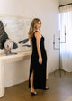 Step into effortless elegance with the June Dress, a maxi-length silhouette designed for comfort and style. Made from our soft, stretchy ribbed fabric, this dress features a built-in bra with removable pads for seamless support. Its draped hemline creates a graceful, flowing look that moves beautifully with every step. Perfect for day-to-night wear or special occasions.